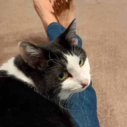 家に猫がいるので猫なでまわしています。座ってると足の上に乗ってくるかわいい猫です。